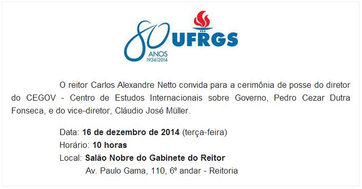 Pedro Cezar Dutra Fonseca assume a diretoria do CEGOV - Centro de Estudos Internacionais sobre Governo