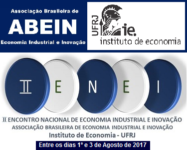 A Associação Brasileira de Economia Industrial e Inovação (ABEIN) e o Instituto de Economia (IE) promoverão o II Encontro da Nacional de Economia Industrial e Inovação (ENEI) no Instituto de Economia, da Universidade Federal do Rio de Janeiro (IE-UFRJ), entre os dias 01 e 03/08/2017, no Rio de Janeiro.